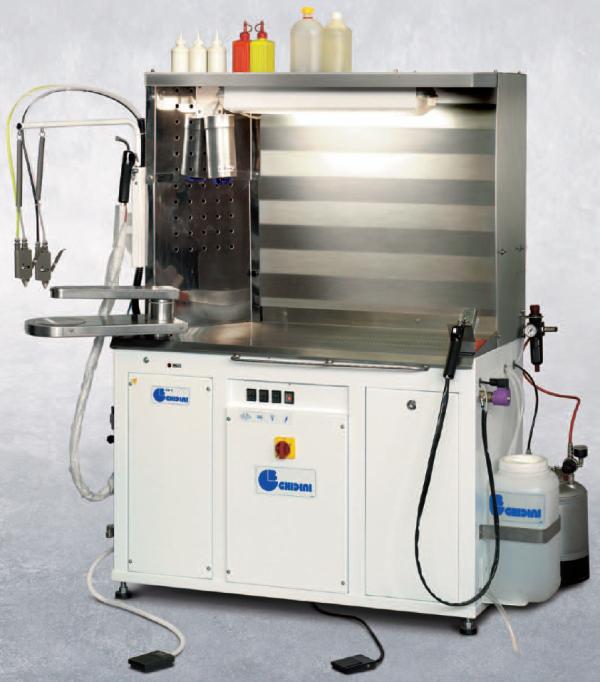 - Eingebaute Absaugung, Kpl. Dampf-Luftpistole und Detachierarm aus
